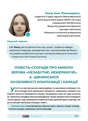 Tsivchynska A. Nezabutnie, nemerknuche... (Povist-spohady pro Mykolu Zerova). New-York, 1962. 66 s.