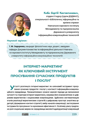 У статті розглянуто інтернет-маркетинг як ключовий інструмент просування сучасних продуктів і послуг у контексті інформаційно-комунікаційного середовища. Проаналізовано сучасні наукові підходи до визначення сутності та структури інтернет-маркетингу, зокрема його взаємозв’язок із цифровим маркетингом і соціальними комунікаціями. Здійснено систематизацію етапів реалізації маркетингових стратегій у цифровому просторі: аналітика аудиторії, формування контент-стратегії, вибір каналів комунікації, застосування інструментів просування та оцінювання ефективності. Особливу увагу приділено ролі соціальних мереж як середовища масової індивідуалізації комунікацій і взаємодії бренду зі споживачем. У роботі підкреслено міждисциплінарний характер інтернет-маркетингу, що поєднує економічні, лінгвістичні та комунікаційні аспекти. Автор робить висновок, що інтернет-маркетинг виступає не лише технічним, а й комунікаційно-смисловим інструментом побудови взаємин між бізнесом і аудиторією, сприяючи формуванню довіри, лояльності та сталого розвитку бренду.